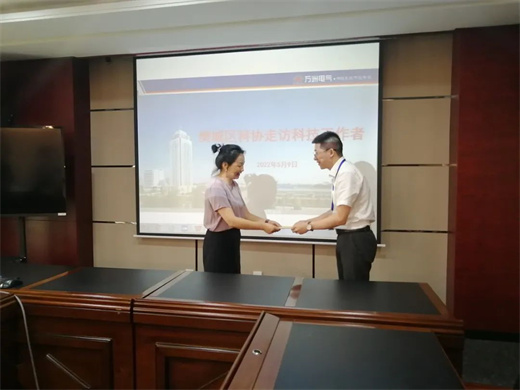 朱主席對萬洲電氣科技人員創新研發智能優化節能系統取得的成績表示肯定,并與路總就科技工作者培訓、技術專題交流、院士專家項目對接等方面進行了深入交流。朱主席表示,區科協將為萬洲電氣提供點對點的科技服務,為萬洲科技人員提供更多關愛,當好科技工作者的“娘家人”。