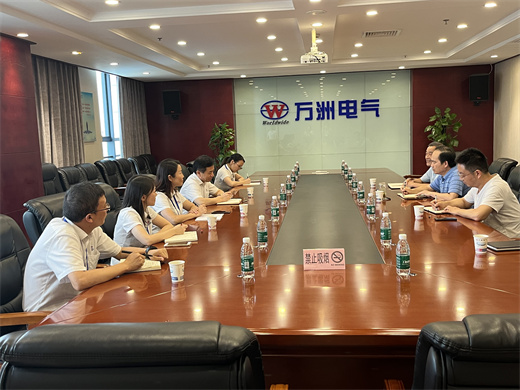 在萬洲電氣工會主席、行政部經(jīng)理熊海娟的陪同下,田局長一行首先參觀了1樓文化展示廳,熊主席介紹了公司重要榮譽、科技創(chuàng)新、企業(yè)發(fā)展等情況。隨后,田局長一行來到19樓董事會會議室,與趙總展開交流座談。