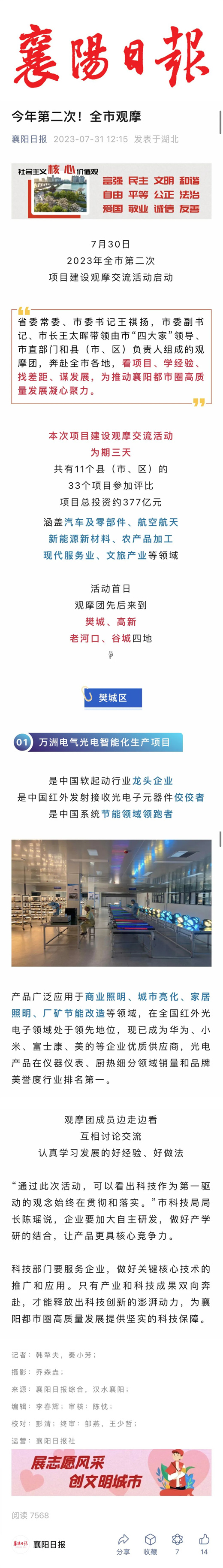 省委常委、市委書記王祺揚,市委副書記、市長王太暉帶領由市“四大家”領導、市直部門和縣(市、區)負責人組成的觀摩團,奔赴全市各地,看項目、學經驗、找差距、謀發展,為推動襄陽都市圈高質量發展凝心聚力。