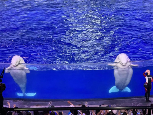 旅游團第一站來到集海洋動物展示、表演和娛樂設(shè)施于一體的主題公園珠海長隆海洋王國。一天的海洋王國之旅,精彩絕倫的海豚、白鯨動物表演,奇妙無比的夢幻海洋世界、色彩斑斕的夜光大巡游、五彩繽紛的夢幻煙花秀讓旅游團流連忘返,大開眼界。