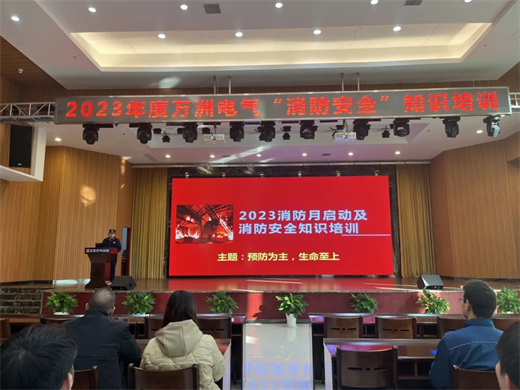 為增強員工消防意識,提高員工突遇火災等緊急情況的處置能力,萬洲電氣專門邀請了樊城區消防救援大隊到公司開展消防知識培訓和救援演練活動,萬洲電氣、云川光電、萬洲機械、襄陽工廠各部門安全員、班組長等近百人參加此次活動。