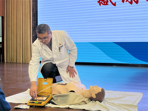 本次培訓(xùn)特別邀請(qǐng)了襄陽市第一人民醫(yī)院體檢中心主治醫(yī)師劉生熙進(jìn)行授課,劉醫(yī)生采用理論和實(shí)踐相結(jié)合的方式,借助仿真模型,深入淺出地為大家講解了急救知識(shí)要點(diǎn),徒手心肺復(fù)蘇(CPR)、自動(dòng)體外除顫器(AED)使用方法以及氣道異物阻塞、逃生避險(xiǎn)與緊急疏散等方面的急救知識(shí)讓大家受益匪淺。為提升實(shí)操能力,參訓(xùn)人員在劉醫(yī)生的指導(dǎo)下,現(xiàn)場(chǎng)實(shí)施了心肺復(fù)蘇搶救。