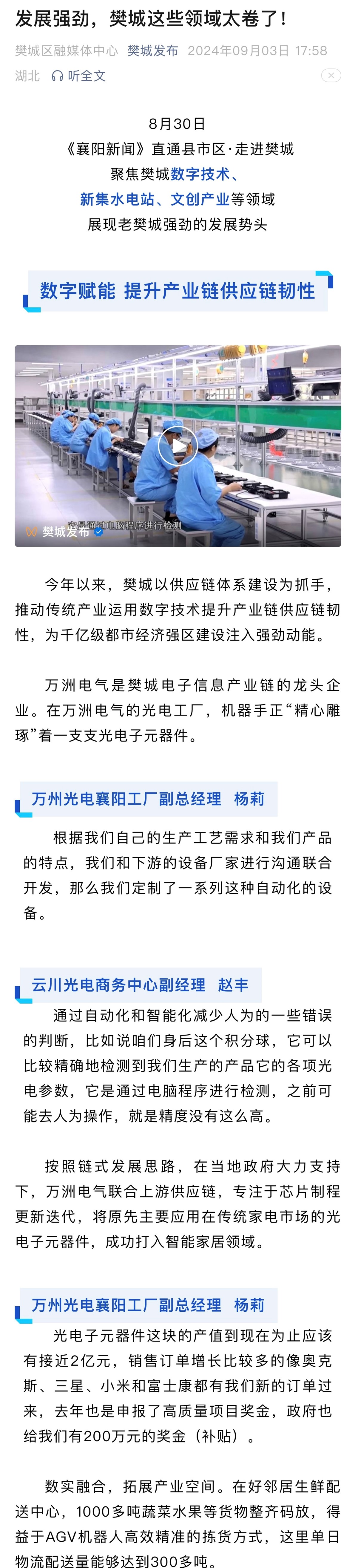 8月30日,《襄陽新聞》直通縣市區·走進樊城聚焦樊城數字技術、新集水電站、文創產業等領域展現老樊城強勁的發展勢頭