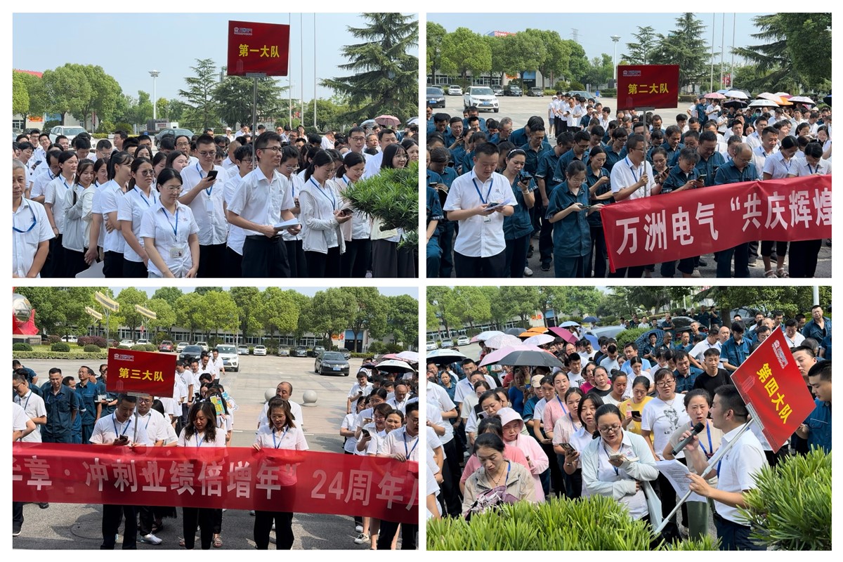秋風送爽,碩果飄香。9月7日下午,萬洲電氣舉行“共慶輝煌譜華章·沖刺業績倍增年”24周年廠慶活動,萬洲電氣、云川光電、萬州光電(襄陽工廠)、萬洲機械全體在家員工參加廠慶活動。