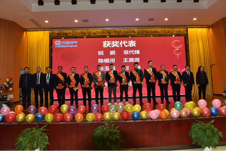 光彩奪目的燈光匯聚在頒獎臺上,獲獎者身披綬帶,帶著自豪和激動的步伐走上前去,頒獎領導為“勞動模范、“優秀管理干部”、“優秀班組長”、“模范黨員”、“銷售單項獎”等近百名獲獎代表頒發了榮譽證書,掌聲雷動,久久不息。大家共同見證了先進人物的高光時刻。在優秀代表發言環節,銷售部柴地軍、章代鋒作為優秀代表,上臺分享了各自取得驕人業績的心得體會和市場開拓的經驗方法,他們表示,新的一年將繼續努力拼搏奮斗,不忘初心闖市場,立足崗位增業績。
