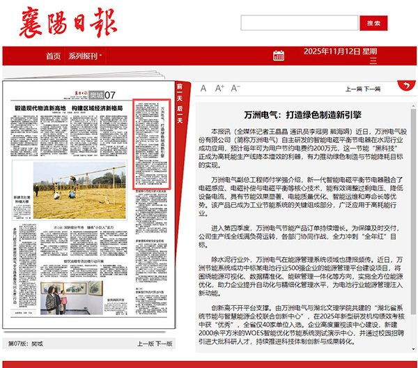 近日,萬洲電氣股份有限公司自主研發(fā)的智能電磁平衡節(jié)電器在水泥行業(yè)成功應用,預計每年可為用戶節(jié)約電費約200萬元,這一節(jié)能“黑科技”正成為高耗能生產線降本增效的利器,有力推動綠色制造與節(jié)能降耗目標的實現(xiàn)。