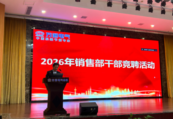 優(yōu)化銷售管理團隊,賦能市場開拓新程。1月4日上午,萬洲電氣在一樓多功能會議廳舉行2026年度銷售干部競聘活動。萬洲電氣董事長、總經(jīng)理趙世運、副總經(jīng)理李明輝、銷售部全體及市場策劃部等100余人齊聚現(xiàn)場,共同見證此次“競優(yōu)擇賢”的人才選拔會。