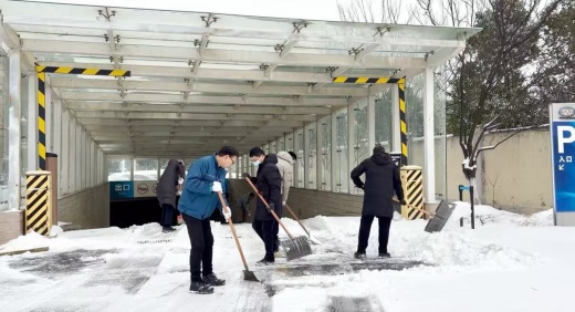 寒風中,大家分工明確、配合默契,有的揮鍬破冰、有的揮帚掃雪、有的合力清運,忙碌的身影在皚皚白雪中格外耀眼。撞擊冰層的“砰砰”聲、清掃積雪的“簌簌”聲,交織成冬日里最暖心的旋律。盡管雙手被寒風凍得通紅,臉頰被寒風吹得發麻,但沒有人叫苦叫累,以飽滿的熱情展示萬洲黨員風采。經過近兩個小時的奮戰,園區內各主要路段的積雪被清除,一條干凈通暢的“安全路”“暖心路”赫然呈現,為全體萬洲人的出行筑牢了安全屏障。