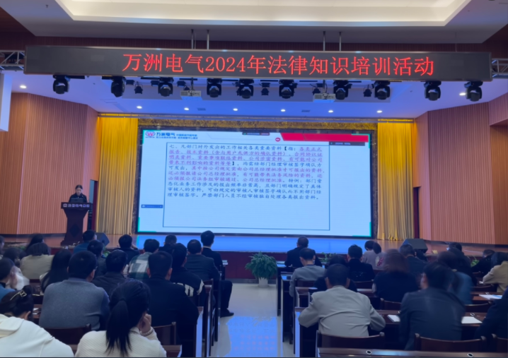 10月24日,萬洲電氣全體干部、市場大部、產品大部等相關部門人員70余人集聚一樓多功能廳,參加2024年法律知識相關培訓。