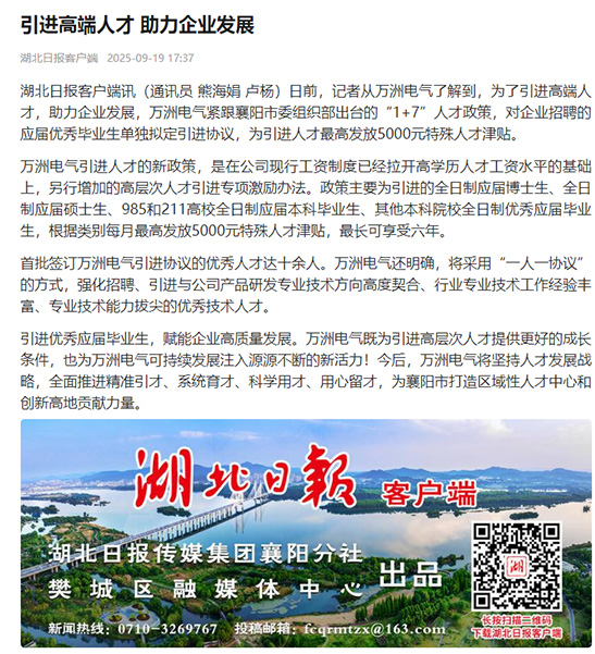 [湖北日報(bào)客戶端訊] 萬洲電氣:引進(jìn)高端人才 助力企業(yè)...