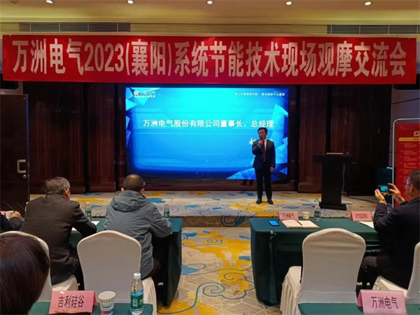 3月24日,在萬洲電氣2023’(襄陽)系統節能技術現場觀摩交流會會場,來自襄陽市經信局、襄陽市節能監測站、隨州市節能監察中心、老河口市發改局、廣水市發改局、廣水市節能監察中心等單位領導齊聚一堂,與各地的高耗能企業一道,共同探討系統節能技術的運用和未來發展趨勢。萬洲電氣董事長、總經理趙世運致歡迎辭。