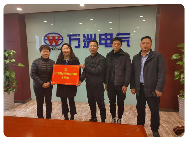 3月24日下午,樊城區總工會經審委主任郭文華、集體協商指導員張險峰一行來到萬洲電氣,為公司送上了全省廠務公開民主管理十佳示范單位獎勵補助經費5萬元。
