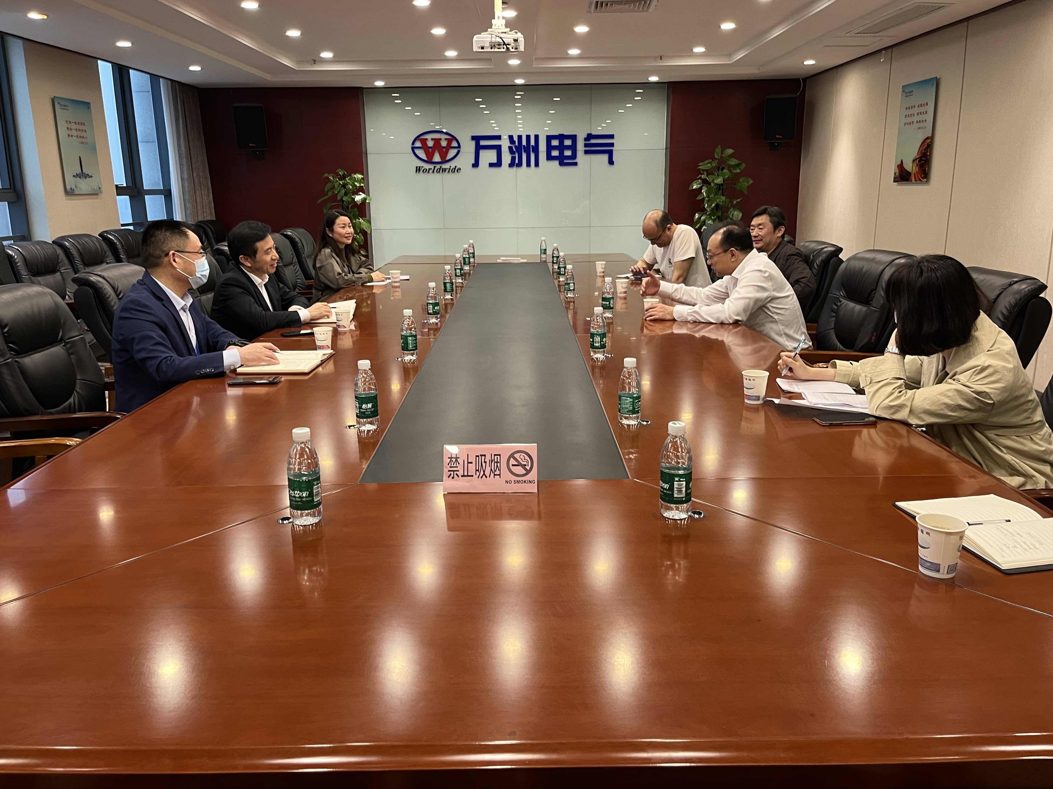 4月13日下午,湖北省經信廳中小企業發展處處長劉衛軍專程到萬洲參觀調研,深入了解專精特新小巨人企業發展情況。萬洲電氣董事長、總經理趙世運、黨委書記、副總經理李明輝接待了劉處長一行。