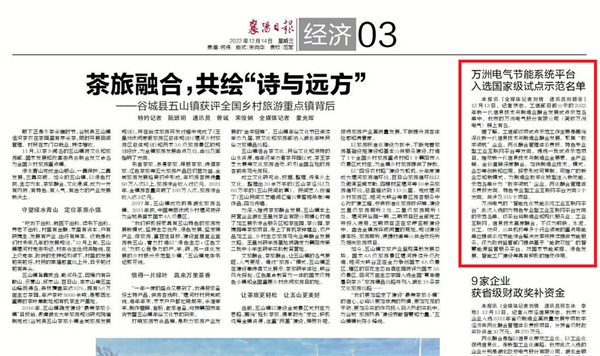 【襄陽(yáng)日?qǐng)?bào)】萬(wàn)洲電氣節(jié)能系統(tǒng)平臺(tái)入選國(guó)家級(jí)試點(diǎn)示范...
